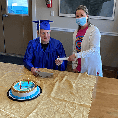 Gamble was accepted into Men’s Recovery Program last July. In November, he enrolled in the Continuing Education Street School Program – one of many programs offered to clients with desires to advance either work or school skills.
